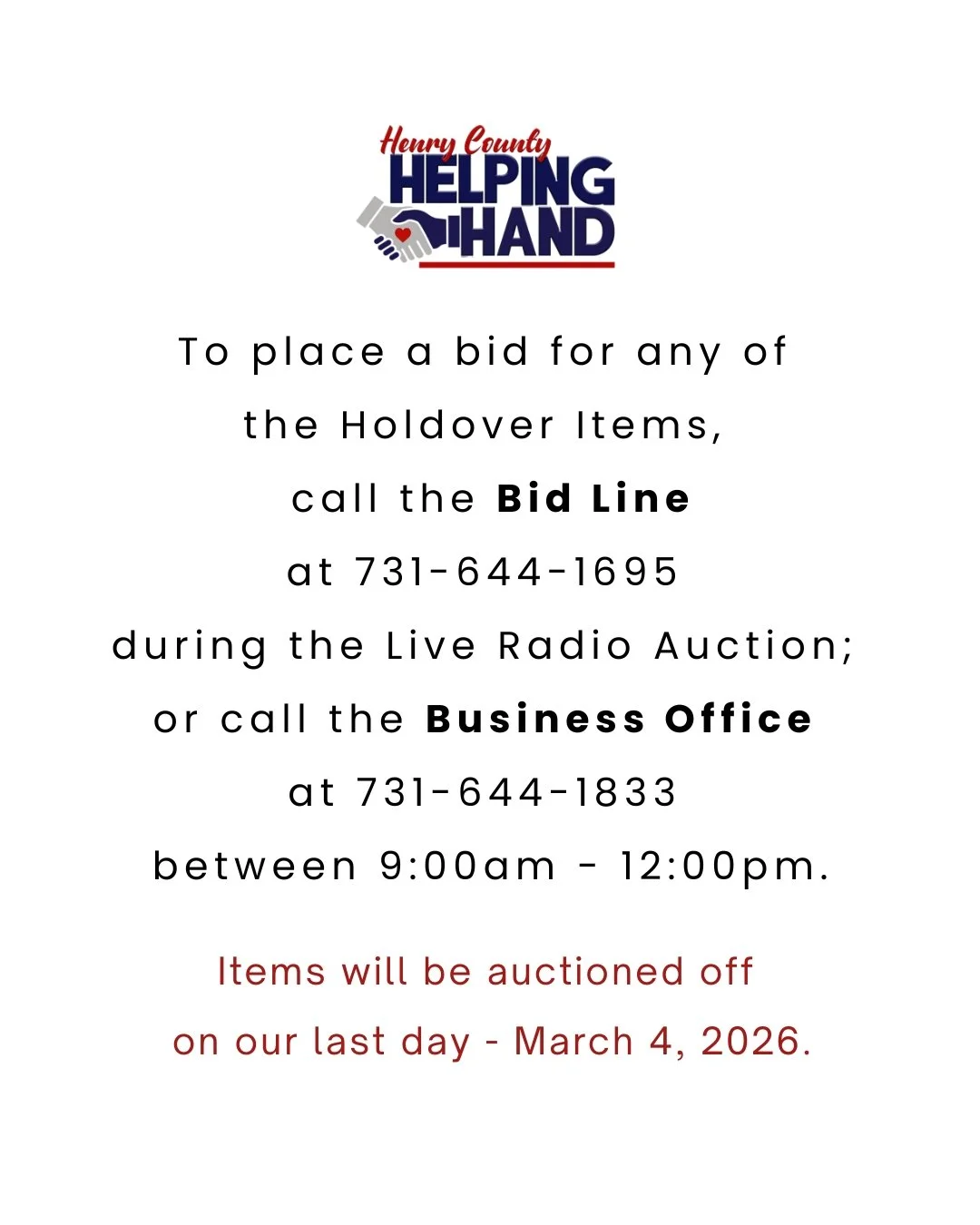To place a bid, call 731-644-1695.